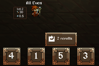 Dice with the Devil is a party-based, dice-chucking, deck-building roguelike. Assemble your crew of adventurers, each with a different dice requirement. Some adventurers have simple requirements but offer limited attack benefits. Other adventurers require you to press your luck to fulfill their requirements, but can really dish out the damage.